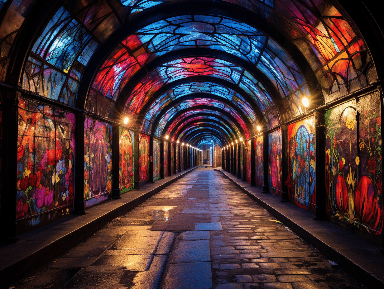 Au cœur de Londres, tapie dans l’ombre des constructions urbaines, se trouve une artère vibrante de créativité : le Leake Street Tunnel. Jadis un passage anonyme sous les rails de la gare de Waterloo, ce tunnel s’est métamorphosé en une galerie à ciel ouvert, consacrée au street art. Sanctuaire de l’expression libre, ses murs sont constamment réinventés par des graffeurs locaux et internationaux. Ce lieu est devenu un incontournable pour les passionnés de culture urbaine et les curieux, offrant une immersion dans un univers où l’art éphémère dialogue avec l’effervescence de la ville.