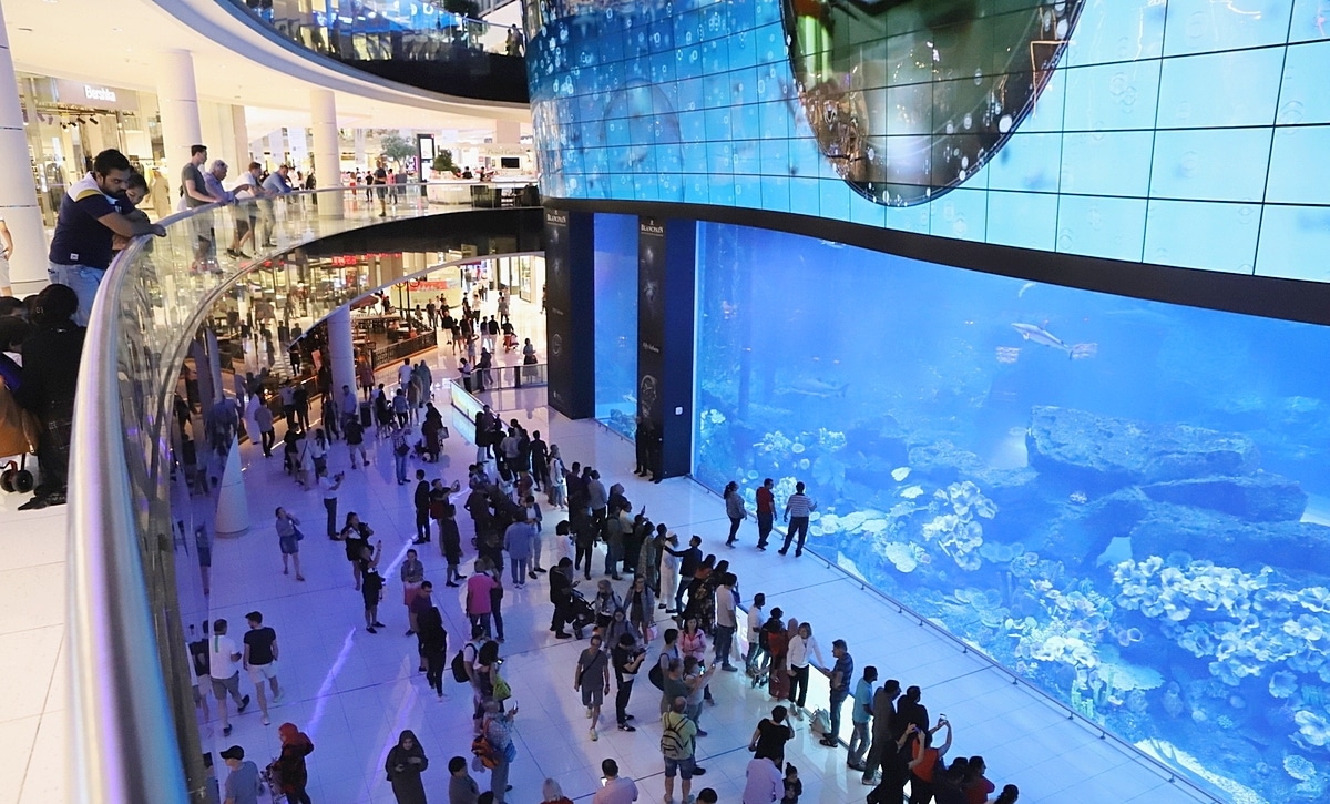 Le centre commercial de Dubaï, Dubaï Mall est le plus grand centre commercial des Émirats Arabes. Il s’étend sur un espace de 8000 m² avec 1200 boutiques à l’intérieur. Classé également comme le plus grand centre commercial au monde, son envergure est tout simplement époustouflante. Il intègre un emplacement où se vend de l’or. Un grand aquarium rempli de requins et différents animaux de mer y est installé et serait le plus grand aquarium du monde. De plus, avec sa grande envergure, un espace est réservé pour la distraction des enfants et une patinoire pour les amateurs de Sky. Le Dubaï Mall est tout à fait spectaculaire par ses différentes compositions.